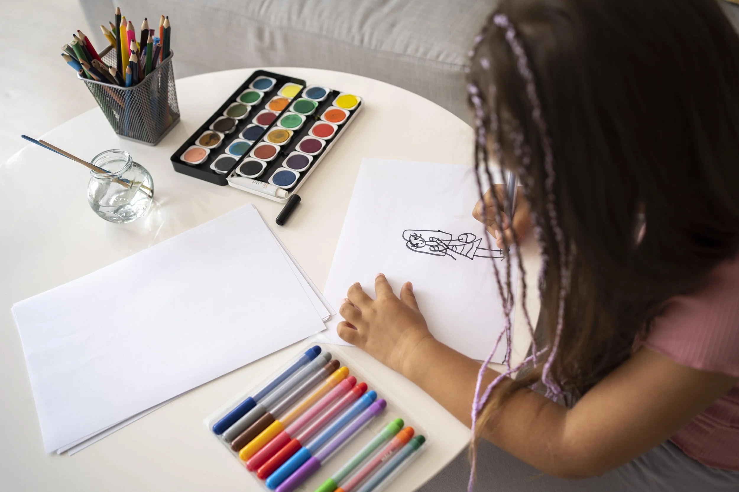 Children engage in guided conversations, creative activities, gentle body‑based regulation, and practical coping tools. Sessions are structured yet flexible, allowing each child to participate in ways that feel comfortable for them.